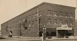 It is a three-story brick-veneered frame building, 50 feet (15 m) by 300 feet (91 m) in plan, with simple Arts and Crafts details. It was an enterprise of Albert H. Brown, a businessman. He also donated the A. H. Brown Public Library, which is also listed on the National Register.[2]