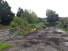 The Llanfyllin Branch of the Cambrian Railways opened on 17 July 1863.[1] The station was originally named Brongwyn; it was later renamed Bryngwyn.[2] It was 6+34 miles (10.9 km) from Llanymynech, and took its name from Bryngwyn Hall.[1] In 1866, there was one train on Tuesdays and one on Wednesdays.[1] Originally provided with a wooden shelter, this was later replaced by one of corrugated iron.[1] The platform was situated on an embankment on the west side of the Llanfechain road over bridge with step access to the road.