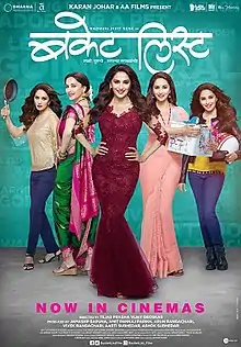 Bucket List is a 2018 Indian Marathi language comedy drama film directed by Tejas Prabha Vijay Deoskar.[2] Jointly produced by DAR Motion Pictures, Dark Horse Cinemas and Blue Mustang Creations, the film stars Madhuri Dixit in her Marathi debut, along with Renuka Shahane and Sumeet Raghavan.[3] Dixit released the first poster of the film on 14 January, it was followed by a 43-second long teaser on 25 March 2018.[4][5] It was released on 25 May 2018.[6]