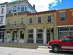 The Building at 126 South Riverview Street is a historic commercial building located in Bellevue, Iowa, United States. It is one of over 217 limestone structures in Jackson County from the mid-19th century, of which 20 are commercial buildings. The two-floor structure was built around 1855 to house a retail establishment, but its original use has not been determined.[2] The stone blocks that were used in its construction vary somewhat in shape and size, and they were laid in courses. The rectangular plan structure features three narrow bays, a recessed entrance in the right bay, dressed stone lintels, and a stone storefront. The window openings have been altered. The building was listed on the National Register of Historic Places in 1991.[1]