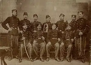 The support of the Legion was taken care of by the Serbian government.[2] The members had to go through some military training so as to be able to participate in the future uprising and in the expected conflict between Serbia and the Ottoman Empire.[3] According to Trotsky, when the Turkish forces entered Belgrade, the Bulgarian legion distinguished itself in the fighting.[4] However the conflict ended swiftly and the subsequent Constantinople Conference decided that not all Ottoman troops should withdraw from Serbia.[4] Due to pressure from the Ottoman Empire the Serbian authorities requested the Legion to be disbanded.[5] As a result, on 21 September 1862 the participants were expelled from Belgrade.