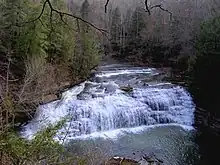Burgess Falls State Park is a state park and state natural area in Putnam County and White County, Tennessee, located in the southeastern United States. The park is situated around a steep gorge in which the Falling Water River drops 250 feet (76 m) in elevation in less than a mile, culminating in a 136-foot (41 m) cataract waterfall.