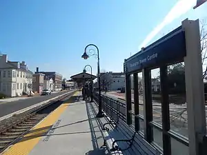 Burlington Towne Centre station is a station on the River Line light rail system, located on West Broad Street in Burlington, Burlington County, New Jersey, United States within the Burlington Historic District. The tracks run in the middle of the street in a thin trench, so while it does run in the middle of the street, it is not considered "street running." Like many other River Line stations, the Towne Centre station is made up of a raised, accessible platform with ticket machines and a small passenger shelter. Of note, the station name uses the spelling "centre" rather than the more usual "center".
