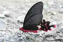 Byasa latreillei, the rose windmill, is a butterfly from the windmills genus (Byasa), found in various parts of Asia, comprising tailed black swallowtail butterflies with white spots and red submarginal crescents.