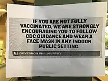 - ↑ Johnson, Brent; Arco, Matt (July 28, 2021). "N.J. 'strongly recommends,' but does not mandate, indoor masks regardless of vaccination status". NJ.com. Retrieved August 6, 2021.