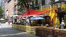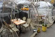 Plans to open indoor dining during the Phase 3 reopening were postponed due to the heightened risks posed by customers refusing to wear face masks and the uncertain role of air conditioning for COVID spread. Indoor dining in other states has resulted in superspreading at certain venues. To compensate in part, outdoor space was expanded by shutting down certain areas to create more space for outdoor dining.[34][35] Plans to reopen museums in Phase 4 were also postponed.[36]