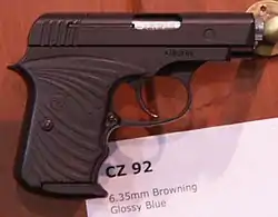 The Vzor 45, commonly known as CZ 45 is a compact blowback operated semi-automatic pistol chambered in .25 ACP. It was made in Czechoslovakia and later in the Czech Republic. Derived from the CZ-36 following World War II, the CZ-45 is currently manufactured by Česká zbrojovka Uherský Brod as the CZ-92.[1]