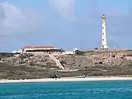 The California Lighthouse, known by locals as Faro stands tall on a limestone plateau at Hudishibana, near Arashi Beach and Sasariwichi dunes on the northwestern tip of Aruba.[1] It holds the distinction of being the tallest structure in Aruba.[4] This lighthouse derives its name from a British steamship, S.S. California, which sank in 1891, predating the lighthouse's construction (c. 1914–1916).[5] The lighthouse was specifically erected to prevent similar tragedies.[6] In May 2016, the lighthouse underwent a restoration, coinciding with the 100th anniversary of its completion.