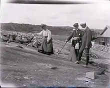 In 1878–1880, the Curmans built two villas in the Dragestil style, also known as the Curman villas, which are a characteristic feature of Lysekil's townscape.[7] They returned to Lysekil every summer and Calla took long walks in the countryside, becoming particularly fond of Stångehuvud a short distance outside the town, where the granite cliffs were sculpted by ice. By the early 1870s, quarrying had begun in Stångehuvud, which was hard on the Bohuslän cliffs at the time, with no regard for the area's unique nature. During summer after summer in the last decades of the 19th and early 20th centuries, Curman saw the area increasingly nibbled away at. The advance of the stone industry in Stångehuvud troubled her to her core. She would spend many evenings wondering what could be done to stop the quarrying and spare the mountains from further destruction.