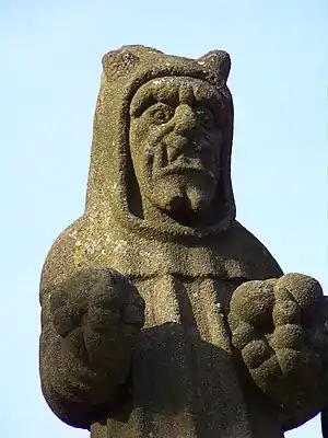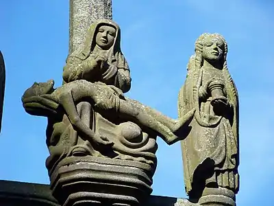 The Calvary of Plougastel-Daoulas in the arrondissement of Brest comprises a raised octagonal pedestal made from the yellow granite of Logonna-Dāaoulas, flanked by four thick arched buttresses. All the sculptural work is by the Maître de Plougastel except the horseman on the left of the crucifix which is by Millet.[1] It is a listed historical monument since 1889.[2]