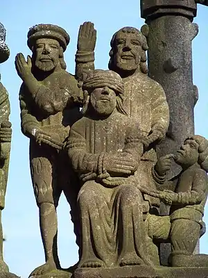 - All the people portrayed wear the dress worn at the time the Calvary was built rather than the dress appropriate to the time of Christ's life. This was a common trait with 17th-century Breton sculptors.