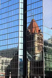 - ↑ Douglass Shand-Tucci Built in Boston: City and Suburb, 1800-2000 Univ. of Mass. Press (1999) ISBN 1-55849-201-1, ISBN 978-1-55849-201-1, p. 296, "By the late 1970s, however, it was not only at the head of State Street that the early efforts at a distinctive Modernist aesthetic sensitive to the historic city was being abandoned. In 1971 even so venerable an institution as the First National Bank of Boston was responsible for an astonishingly bombastic tower by Campbell, Aldrich and Nulty, the heavy, dark red granite bulging middle range of which is difficult to explain and impossible to defend."