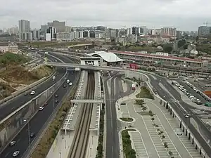Campolide Station (Portuguese: Estação Ferroviária de Campolide) is a railway station located in the city of Lisbon. It is served by the Sintra and Azambuja Lines, as well as the private operator Fertagus.[1][3] It is operated by Lisbon CP and managed by Infraestruturas de Portugal.[2]