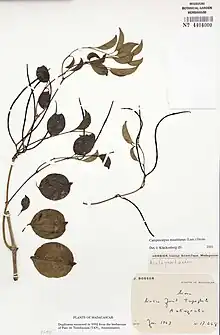 | Photograph of a herbarium specimen of Camptocarpus mauritianus[1] | |