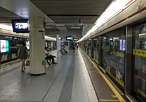 Caobao Road (simplified Chinese: 漕宝路; traditional Chinese: 漕寶路; pinyin: Cáobǎo Lù) is an interchange station between Line 1 and Line 12 of the Shanghai Metro. This station is part of the initial southern section of the line that opened on 28 May 1993[1][2] and is located in Xuhui District. The station became an interchange station with the arrival of Line 12 which entered operation on 19 December 2015.[3] This station has been rumored to be haunted.[4]