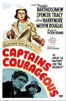 Captains Courageous is a 1937 American adventure film directed by Victor Fleming and starring Freddie Bartholomew, Spencer Tracy, Lionel Barrymore and Melvyn Douglas. Based on the 1897 novel of the same name by Rudyard Kipling, the film had its world premiere at the Carthay Circle Theatre in Los Angeles. It was produced by Louis D. Lighton and made by Metro-Goldwyn-Mayer. Filmed in black and white, Captains Courageous was advertised by MGM as a coming-of-age classic with exciting action sequences.