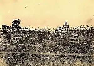 The Black Flags had thrown up an impressive series of fortifications around Hưng Hóa, but Millot made no attempt to attack the town's formidable defences. Having pinned the Black Flags frontally with General de Négrier's 2nd Brigade, he subjected Hưng Hóa to a ferocious artillery bombardment from Trung Hà with two 80-millimetre (3.1 in) and one 90-millimetre (3.5 in) artillery batteries. The bombardment began at 10:00 am on 11 April and lasted for several hours, setting many buildings inside Hưng Hóa alight and inflicting heavy casualties on the Black Flag defenders. The French did not suffer a single battle casualty. The soldiers of the 2nd Brigade spent the day in complete idleness, enjoying the warm spring sunshine and watching the smoke rise silently from Hưng Hóa as the French artillery methodically reduced the town to ruins.[2] While Millot's artillery bombarded Hưng Hóa, General Louis Brière de l'Isle's 1st Brigade successfully executed its flank march to the south of Hưng Hóa. On 11 April, seeing Brière de l'Isle's Turcos and marine infantry emerging behind their flank at Xuân Đồng, the Black Flags evacuated Hưng Hóa before they were trapped inside. They set alight the remaining buildings before they left, and on the following morning the French found the town completely abandoned.[3]