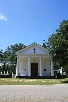 At the time of the nomination, the Carlowville Historic District contained 21 contributing properties, built primarily in the Colonial Georgian, Federal, and Greek Revival styles. Greek Revival is the dominant style.[2] The contributing buildings recognized by architectural historians as the most important structures to the district include: the Rumpt-Alison House (built circa 1840), a two-story Greek Revival-style house with a two-tiered portico; the Alison-Wade House (1849), a two-story Colonial Georgian-style house with a small one-story porch; St. Paul's Episcopal Church (1838), with a Greek Revival-style tetrastyle Doric portico and late nineteenth century Gothic Revival-style bell tower and windows; Carlowville Baptist Church (circa 1837), an end-gabled Federal-style building with a central entrance porch; the Lee-Wade House (1841), an end-gabled two-story Greek Revival-style house with a monumental portico that originally had a brick ground story;[3] the Alison-Youngblood House (1833), remodeled in the Neoclassical style during the 1920s; the St. Paul's Episcopal Church Rectory (mid-nineteenth century), a one-story Greek Revival-style building that originally had a brick ground story; and the Calhoun Law Office (1840), a small Greek Revival-style professional building that was built by Judge James Martin Calhoun, a nephew of John C. Calhoun.[2]
