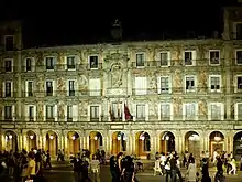 The Casa de la Panadería is a municipal and cultural building on the north side of the Plaza Mayor in Madrid. It is four stories high, the ground floor comprising porticos and the top floor in the form of an attic, with its sides crowned by angular towers.
