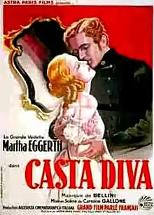 Casta Diva is a 1935 Italian musical drama film directed by Carmine Gallone and starring Mártha Eggerth, Lamberto Picasso and Gualtiero Tumiati.[1] The film won Best Italian Film at the 1935 Venice International Film Festival.[2] An English-language version The Divine Spark was made at the same time, also directed by Gallone and starring Eggerth.[3] Gallone remade the film in 1954 in Technicolor.[4]