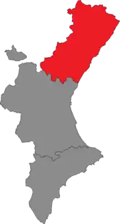 Castellón (Valencian: Castelló) is one of the three constituencies (Spanish: circunscripciones) represented in the Corts Valencianes, the regional legislature of the Valencian Community. The constituency currently elects 24 deputies. Its boundaries correspond to those of the Spanish province of Castellón. The electoral system uses the D'Hondt method and a closed-list proportional representation, with a minimum threshold of five percent regionally.