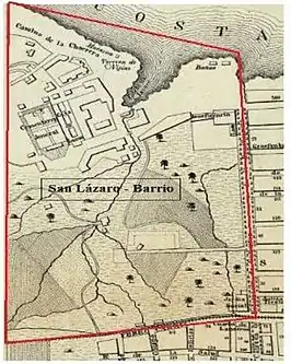 The earliest settlement in the current area of Cayo Hueso dates back to the second half of the 16th century, following the burning of Havana by French pirate Jacques de Sores. It wasn't until 1912 that the area was officially recognized as the neighbourhood of Cayo Hueso. Its name, which means "bone cay", derives from the fact that the Espada Cemetery was located there;[1] it was demolished in 1908. Among the oldest institutions in the area were the leprosy hospital (demolished in 1916), the Casa de Beneficencia orphanage (replaced by the Hermanos Ameijeiras hospital),[2] and the San Dionisio mental asylum which operated between 1828 and 1860.[3][4] The asylum was located between the cemetery and the San Lázaro hospital, and named after the then governor of Cuba, Francisco Dionisio Vives.[5]