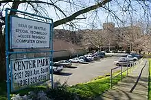 Center Park, located at 2121 26th Avenue South, is a subsidized mid-rise building complex located in the Mt. Baker neighborhood of Seattle, Washington, designed to provide living accommodation to physically or mentally challenged individuals and their caretakers. The apartments were built in the 1960s by Ida May Daly, a progressive woman with severe muscular dystrophy.[1] She purchased an area of inexpensive land in the Rainier Valley neighborhood in south Seattle. Center Park is now managed and maintained by the Department of Housing and Urban Development and the Seattle Housing Authority.