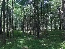 The geography of Central North Carolina consists primarily of rolling hills with elevations generally between 300 and 1500 feet above sea level, generally sloping upward from east to west. There are some smaller mountain ranges, such as the Uwharrie Mountains. Many rivers cross the region, such as the Neuse, Cape Fear, and Pee Dee. The approximate eastern border of the Piedmont is the Fall Line, where many of these rivers have waterfalls. This was historically important as a good location for water mills, and it was the upper limit of navigability on these rivers. Some gold, coal, and iron has been found in the region. The land was historically covered with oak, hickory, and pine forests. Much of this forest has been destroyed due to agriculture and urban development, but some forests have regrown due to the abandonment of farms. [1]