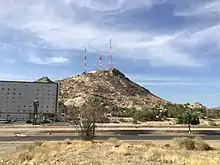 Cerro de la Campana (Bell Hill) is a rocky landform and a symbol of the city of Hermosillo, Sonora, in Mexico. This place is an excellent viewpoint for tourists, because from the rocky hilltop you can see an almost complete panoramic view of the City of the Sun (Ciudad del Sol). It was inaugurated in 1909 as the viewpoint of the city. Its name comes from its shape, which is similar to a bell as seen from the west, even though other theories prompt that its name comes from the sound similar to a bell as rocks crash on the hill.