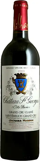 A bottle of Château Saint Georges (Côte Pavie) wine