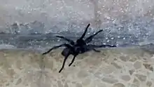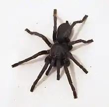 The body length is approximately 2.5 cm for adult males and 5 cm or larger for females.[5] It is one of the largest spiders in Israel.[2] The color varies between black, gray and brown dark; they tend to be paler in the cooler more forested regions of their range and darker in the southern more arid areas.[4]