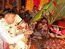 Among the Ahoms, intermarriage within the same clan is prohibited.[5] Numerous traditions observed during Ahom weddings are shared with other Assamese communities, including the joron ceremony, daiyan, and gathiyan.[6]