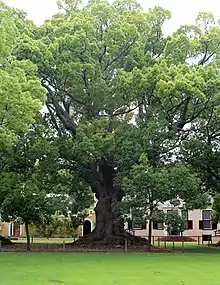 One of five camphor trees (Cinnamomum camphora) at Vergelegen, Somerset West. These trees were planted between 1700 and 1706 by the then governor of the Cape Colony, Willem Adriaan van der Stel. The five trees are over 26 metres in height and each of their trunks have a girth of 7 metres (measured at a height of 3 metres)