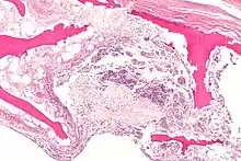Necrotic bone and inflammation histology slide