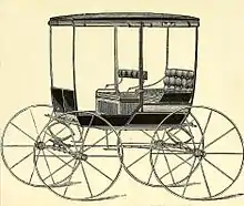 Remarkably, research has failed to bring to light contemporary reports from the 1890s of Black's first automobile, but eyewitness accounts and early photographs exist.[2] A business card of the C. H. Black Manufacturing Company dated 1892 shows a picture of Black's first automobile with the legend "Estimates furnished for power-equipped vehicles of any style", and two of his early vehicles are extant, one on display at the Children's Museum of Indianapolis and the other in a private collection.[2] Black's design failed to go into larger-scale production, largely because its ignition system required the use of a kerosene torch.