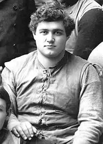 Charles H. "Fatty" Smith was an American football center who played for the University of Michigan Wolverines football team in 1893 and 1894. Smith stood 5 feet, 10 inches, and weighed a hefty 230 pounds in 1893.[1] In 1894, Smith anchored the line for one of the first great Michigan football teams. The 1894 Michigan team outscored opponents 244-84 and compiled a record of 9-1-1, including wins over Cornell University and the University of Chicago. Michigan's 1894 victory over Cornell marked the first victory by a Western football school against one of the Eastern football powers. Up to that point, no Western player had been selected for the annual College Football All-America Teams selected by Eastern football authorities, Caspar Whitney and Walter Camp. Smith was the standout star of Western football in 1894, and Western football enthusiasts lobbied for Smith to be selected as an All-American. Whitney and Camp declined the suggestion, and no Western football players would be selected as All-Americans until 1898, when Clarence Herschberger and William Cunningham received the honors.[2] The resistance to selecting Smith (or any other Western player) as an All-American is reflected in the following newspaper account from December 1894: