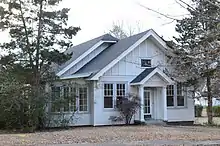 Banks oversaw the gradual development of the area north of his estate, building a collection of modest Craftsman style houses lining Charlotte Street between about 1906 and 1930. Many of them were built by the same contractor, C. H. Kollman, and the neighborhood presents the most unified appearance of any in the city. At least one was designed by associates of Charles L. Thompson.[2]