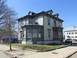 The Childs–Brown House is an historic house in Pawtucket, Rhode Island. It is a two-story wood-frame structure, roughly square in shape, with a low-pitch hipped roof broken by dormer roofs. An ell extends to the rear of the house. Both the eaves and the roof of the front porch exhibit heavy brackets typical of the Italianate style. The interior also retains Italianate style in its woodwork, most prominently in the semi-elliptical main stairway. Built in 1868–69 for Alfred L. Childs, an ice dealer, it was for a number of years owned by members of the Brown family prominent in Rhode Island civic and economic life.[2]