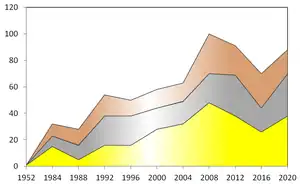 Number of medals won by China at Olympic summer games from 1952 to 2020