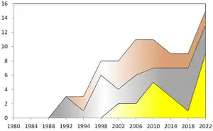 Number of medals won by China at Olympic winter games from 1980 to 2022