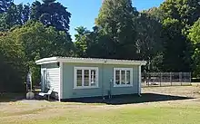 The Climatological Station has provided daily readings for well over a century. Gardens staff record the information at 9 am each day. Cloud cover, visibility, wind direction, rainfall and other details are forwarded to the national Meteorological Service. The 1940s wooden building beside the Climatological Station is a remnant of the Magnetic Observatory set up here in 1901. In 1897 Adolf Schmidt proposed a magnetic field observatory to improve the distribution of magnetic observatories across the world;[18] there were then 4 in Britain and 5 in Japan, but only 3 south of the equator; Jakarta, Mauritius and Melbourne.[19] In 1901 a magnetograph house, an absolute house (for celestial and magnetic measurements) and an office and seismograph room were built.[20] The observatory was famously used by both Captain Robert Falcon Scott and Sir Ernest Shackleton's Antarctic teams to make magnetic surveys in preparation for their expeditions.[21] However, electrification of the tramways in 1905 interfered with the magnetic measurements. As a result, between 1912 and 1929, a new observatory was set up at Amberley,[18] though some of the work continued until the land reverted to Christchurch City Council in 1970.[20] GNS now does the work at Eyrewell.[22]