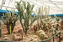 It contains the most extensive publicly owned collection of cacti and succulents in New Zealand and also includes a diorama painted by Gordon Gee, the sign and label writer for the Botanic Gardens from 1956 to 1974. The diorama depicts a desert scene representing from South Africa to South America.