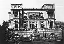 He made trips to Bavaria and Austria in 1843, to study the Medieval and Renaissance architecture there. His work on a new building for the Russian Legation impressed the Crown Prince, so Leins was contracted to design the "Villa Berg", a new royal residence. In 1846, he accompanied the Prince's entourage to Palermo, seeking inspiration from the structures there.[2] In 1853, he undertook another study trip to Italy, Spain and North Africa with Friedrich Wilhelm Hackländer and Theodor Horschelt.