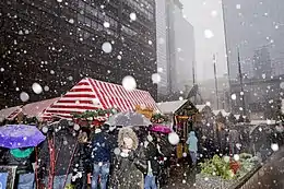 The market is situated by a large Christmas tree at Daley Plaza and also houses a small nativity scene.[6] The site features entertainment from Christmas choirs, dance groups, and brass bands.[2] It also houses a Santa house.[2] At the site beer, wine, baked goods, meats, toys, holiday ornaments, and other Christmas decorations are sold by vendors from Germany, Ukraine, Austria, and the Chicago metropolitan area.[2]