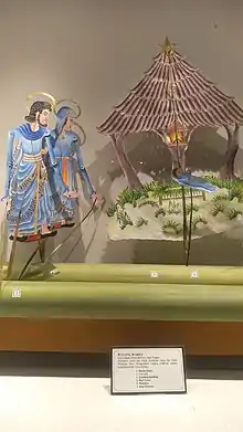 In the Yogyakarta area, Christmas celebrations are marked by a wayang kulit adaptation of the Nativity scene. Church Mass is led by the priest who wears traditional Javanese attire (wearing beskap and blankon) and speaks in the local language. Similar to Eid al-Fitr, during Christmas time, people visit friends and family; children may receive money in an envelope from elders.[7][9]