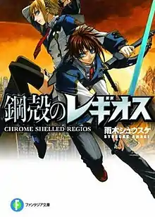 Chrome Shelled Regios (鋼殻のレギオス, Kōkaku no Regiosu) is a Japanese light novel series by Shūsuke Amagi, with illustrations by Miyū. A short story light novel series was serialized in Dragon Magazine. A manga adaptation drawn by Miyū was serialized in the shōnen manga magazine Dragon Age Pure. A second manga adaptation drawn by Nodoka Kiyose is serialized in the shōnen manga magazine Monthly Dragon Age. A third manga adaptation drawn by Watari was serialized in Beans Ace magazine. A four-panel comic strip adaptation drawn by Masumi Futaba was serialied in Monthly Dragon Age magazine. A prequel light novel series titled Legend of Regios was published by Fujimi Shobo under its Style-F label. An anime adaptation produced by Zexcs aired on January 11, 2009, to June 20, 2009, and is licensed in North America by Funimation Entertainment. A spin-off light novel series titled Regios Crusade was published from 2009 to 2012. Another spin-off light novel series, Journey of me and Regios, was published in 2009.