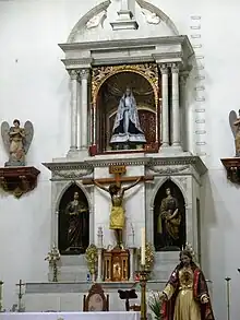 The current building is the second on the site, originally called Santa Cruz (Contzinco).[1] According to documents from the time, the architecture of the original church was Renaissance style, built with masonry and topped with a vault in sandstone. The church was under the tenure of the Augustinians from 1633 to 1750, with the most important feature being the Virgen de la Soledad.[2] After the Augustinians left this site, the church was rebuilt by Father Gregorio Pérez Cancio [6] with the help of architects Cayetano de Sigüenza, Ildefonso Iniesta Bejarano, Francisco Antonio de Guerrero y Torres and Ignacio Castera.[2] It was finished in 1787 and consecrated in 1792.[3]