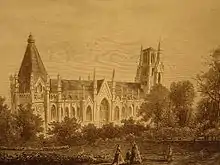 The Church of Our Lady of Laeken in 1872. Note the missing spire.