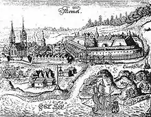 Panorama of Klaipėda before 1685 with the Church of St. John and Church of St. Nicholas (from left)