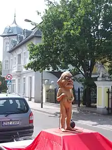 Citizen Włapko (Citizen Skimmer, Polish: Obywatel Włapko) is the name of a 1.10 meter-high sculpture symbolizing a corrupt official.[1] The satirical figure shows a naked boy with the head of a mature man wearing glasses with a mustache and beard. His right forefinger pointing to his left palm indicates a request for money. There is a bomb next to his left foot, which symbolizes the explosive nature of the request, and the nudity symbolizes the whole, "naked" truth.